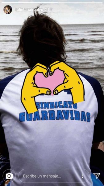 En más de una oportunidad, se dijo que la actriz estaba en pareja con Adrián Suar. Ambos fueron claros y negaron el romance. Finalmente, la joven le dijo adiós a la soltería. Compartió a través de su Instagram Stories una foto que, claramente, corresponde a la de su nuevo novio. Se puede ver a un musculoso muchacho luciendo una remera que dice "Sindicato guardavidas".
