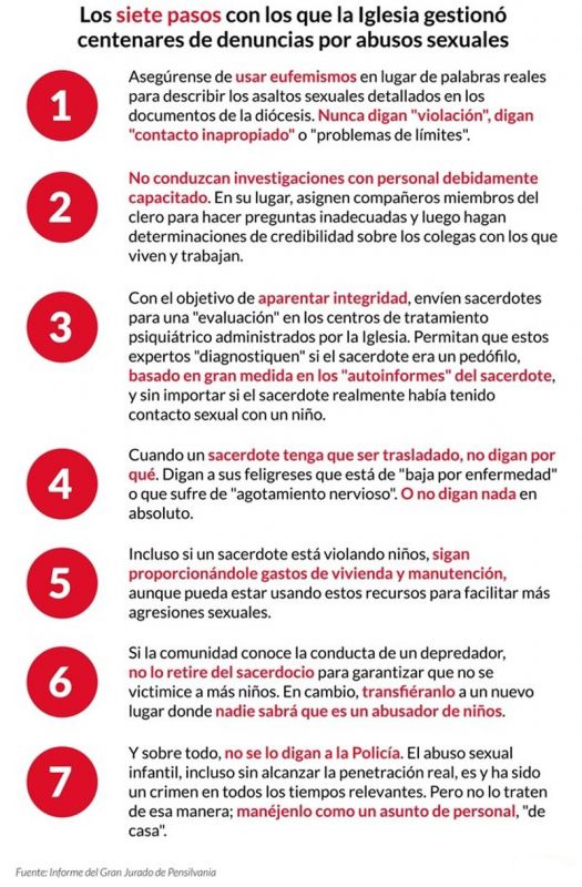 La Iglesia Católica usó un "manual de jugadas" para encubrir abusos sexuales de 300 sacerdotes en Pensilvania: llegaba la denuncia y empezaban los siete pasos.