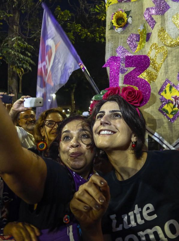 Junto a él estaba Manuela d'Ávila, a quien abrazó y calificó de "joven bonita", representante de la nueva generación de la izquierda.