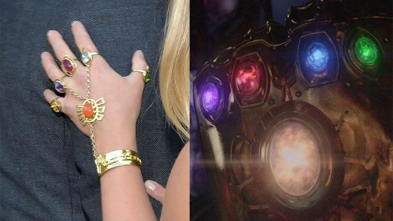 Pero además tuvo un detalle nerd para todos los fanáticos del film de Marvel. Se puso una pulsera que a su vez tenía anillos con piedras preciosas similares a las gemas del infinito del villano del film, Thanos.