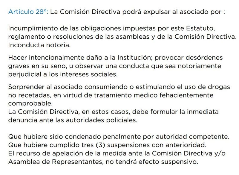 El artículo 28 inciso b y c del estatuto social amparan la decisión del presidente Sergio Rapisarda.