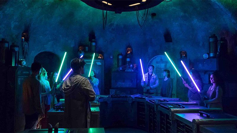 Las referencias religiosas abundan. Esto es así porque "Star Wars" ofreció también una posibilidad de trascendencia, por ejemplo para los chicos y chicas preadolescentes que no tenían ganas de ir a la iglesia. Y también para los niños grandes: hay miles de adultos expertos en jedismo. Esta es quizá una de las cosas que diferencian a esta atracción de "Star Wars" de otras en Disney: muchos padres esperan visitarla con casi la misma ansiedad que sus hijos.