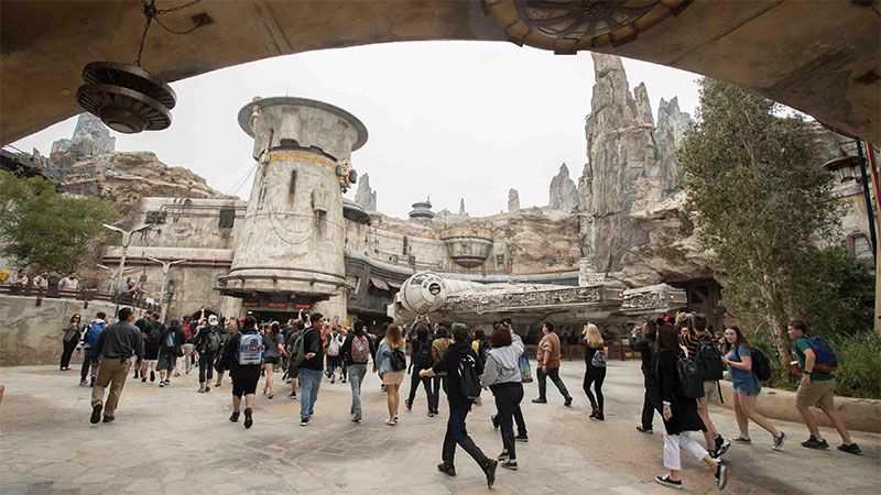 Todos los trabajadores de este parque van disfrazados e interpretan una historia. El visitante se topa con comerciantes, contrabandistas, cazadores de recompensas, rebeldes, soldados y el sombrío Kylo Ren. Uno de los principales atractivos es el "Halcón Milenario", la nave espacial de Han Solo (Harrison Ford) y su copiloto wookie Chewbacca.