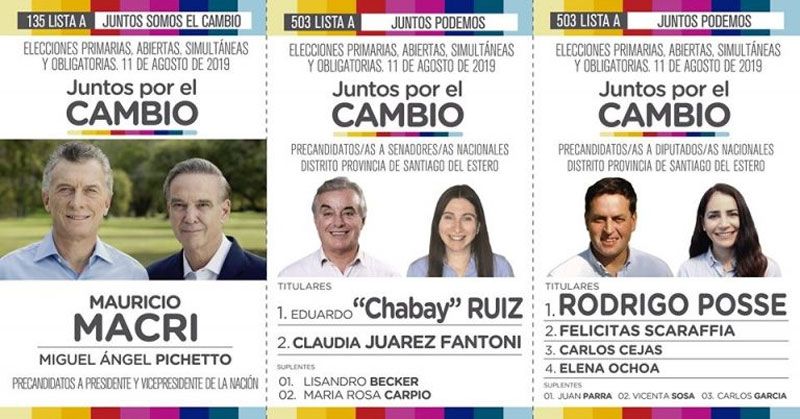 En tanto, Juntos por el Cambio buscará la reelección de Mauricio Macri, con dos listas que competirán en las primarias, la de “Cambia Santiago” y “Juntos Podemos”, apoyada por el PRO.