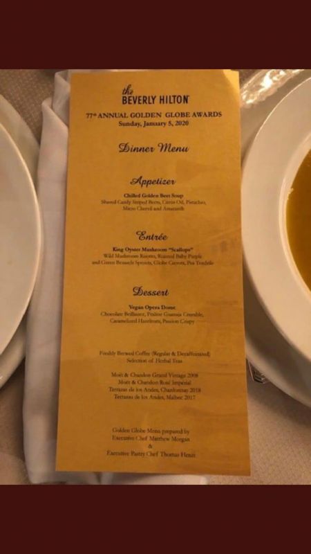 La Asociación de la Prensa Extranjera de Hollywood (The Hollywood Foreign Press Association) eligió para la cena de esta premiación -que concita gran interés en la industria cinematográfica por ser la antesala de los Premios Oscar- un menú 100% vegano, y se eligió para su maridaje dos vinos de Mendoza: un Terrazas de los Andes, Chardonnay 2018 y un Terrazas de los Andes, Malbec, 2017.
