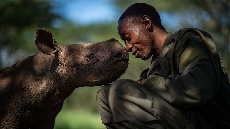 Estas incluyen la de un desafortunado orangután siendo explotado para un espectáculo, tomada por Aaron Gekoski; la dramática foto de una madre jaguar con su cachorro enfrentándose a una anaconda, captada por Michel Zoghzhogi; el conmovedor retrato de un guarda forestal y el rinoceronte negro bebé en su cuidado, registrada por Martin Buzora; y un grupo de renos árticos blancos en la nieve fotografiado por Francis De Andres.