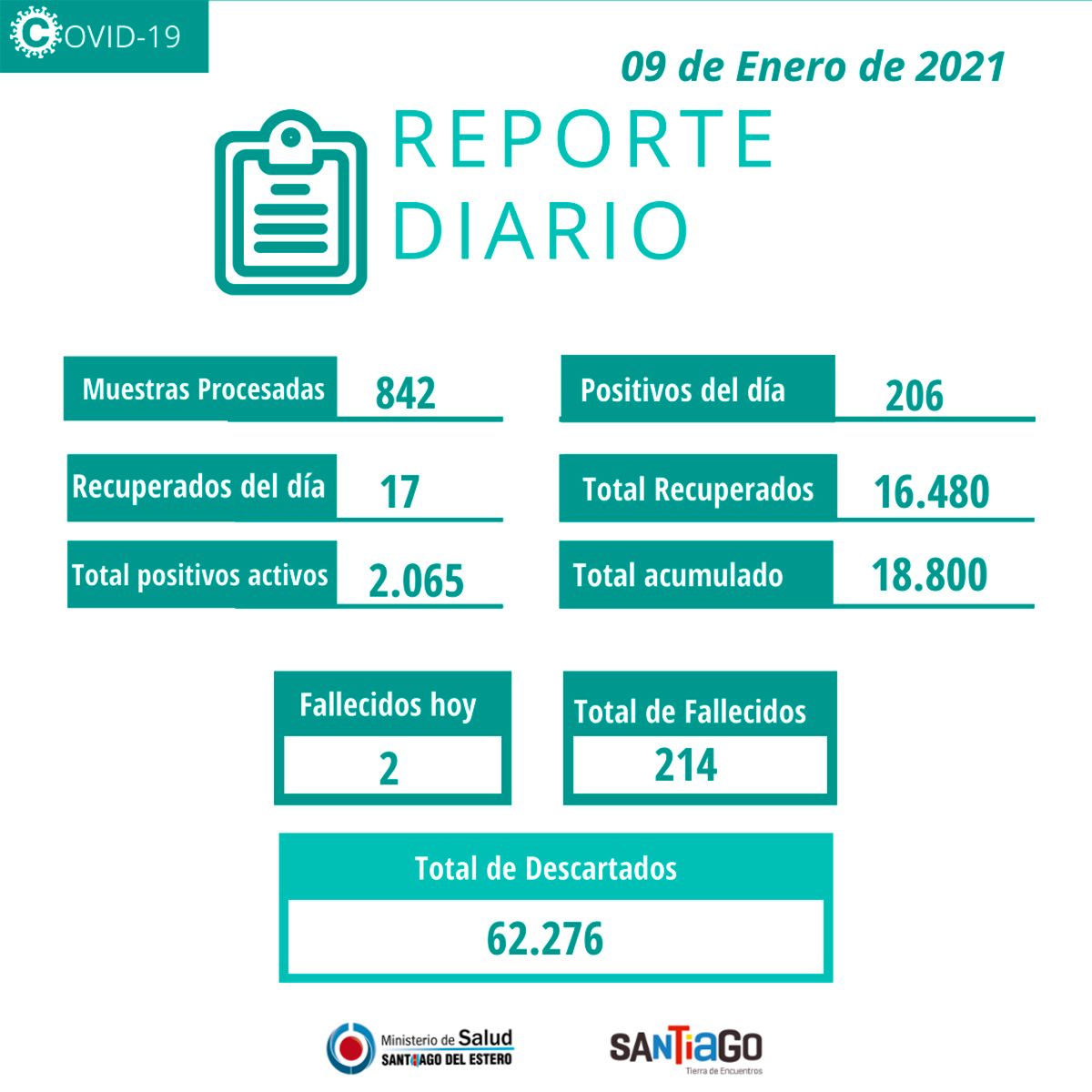 Este miércoles 7 de abril, el Ministerio de Salud local informó que en Santiago del Estero se registraron 202 contagios diarios de coronavirus en 999 muestras procesadas. La última vez que la provincia había superado los 200 infectados fue el 9 de enero con 206 de 842 muestras. Con esa cifra, el acumulado desde que comenzó la pandemia es de 25.761 casos positivos.