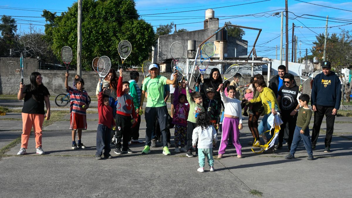 La clase de tenis estuvo a cargo de la Escuela Deportiva de Integración Social, dirigida por el profesor Álvaro Caldera, que cuenta con 25 años de trayectoria y ofrece actividades deportivas, culturales y recreativas libres y gratuitas. El predio y el espacio verde fueron acondicionados para la ocasión por el Centro Operativo N° 8, permitiendo que familias y amigos compartieran una tarde de juegos y solidaridad.