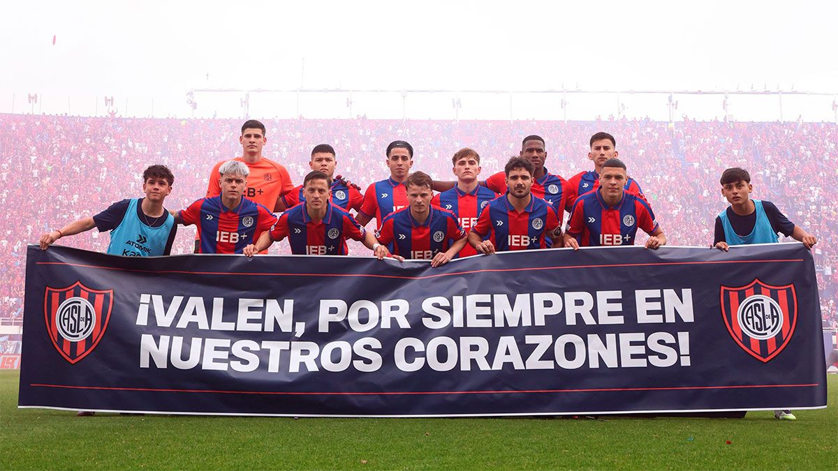 Minutos antes del inicio en el estadio Pedro Bidegain, los futbolistas posaron con una bandera que llevaba la leyenda: “Valen, por siempre en nuestros corazones”. El gesto fue acompañado por un mensaje institucional en las redes sociales del club, donde el Ciclón volvió a expresar su apoyo a la familia y seres queridos del joven jugador.