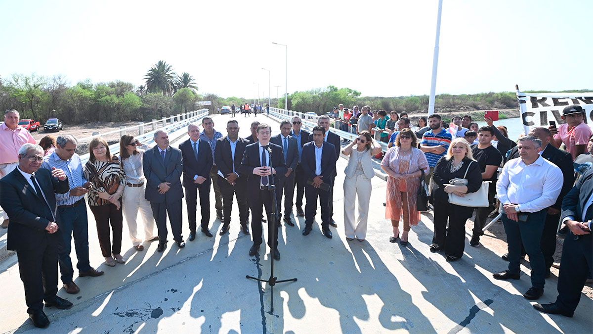 Durante el corte de cintas el mandatario estuvo acompañado por el vicegobernador Carlos Silva Neder, el jefe de Gabinete, Elías Suárez; el ministro de Obras Públicas, Aldo Hid; el secretario de Obras Públicas, Jorge Zuaín; el director de Vialidad, José Alfano; la intendente de Forres, Belén Abdala, y los comisionados de Vilmer, Walter Díaz, y de Los Romanos, Sergio Coronel.