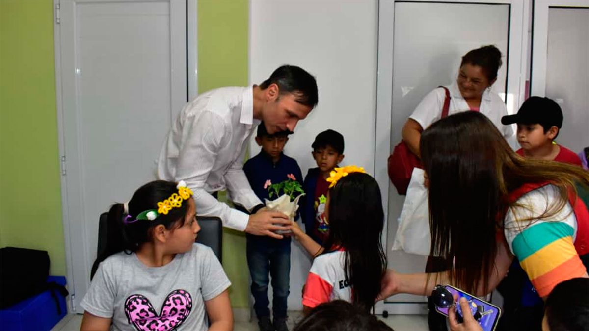 Durante la visita, los chicos fueron recibidos en el edificio municipal por el Intendente Dr. Víctor Araujo, quien recibió presentes y mucho cariño de los niños.