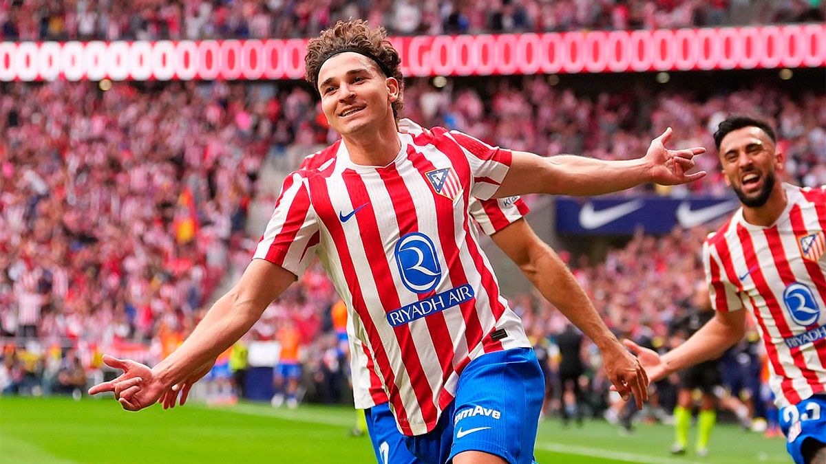 El delantero argentino marcó por duplicado en el triunfazo del Colchonero por 5-2. Mastantuono ingresó en el segundo tiempo para el elenco merengue.