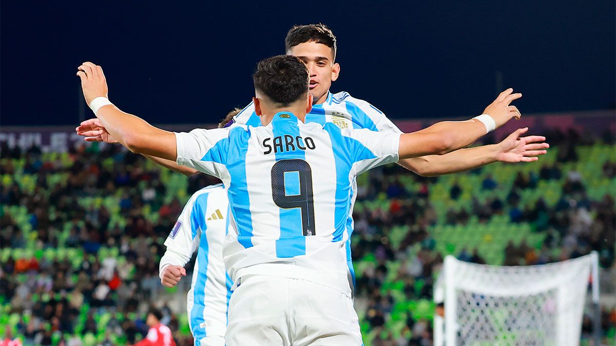 El seleccionado argentino jugó gran parte del partido con uno menos pero se impuso por 3-1 con un doblete de Sarco y un gol de Subiabre.