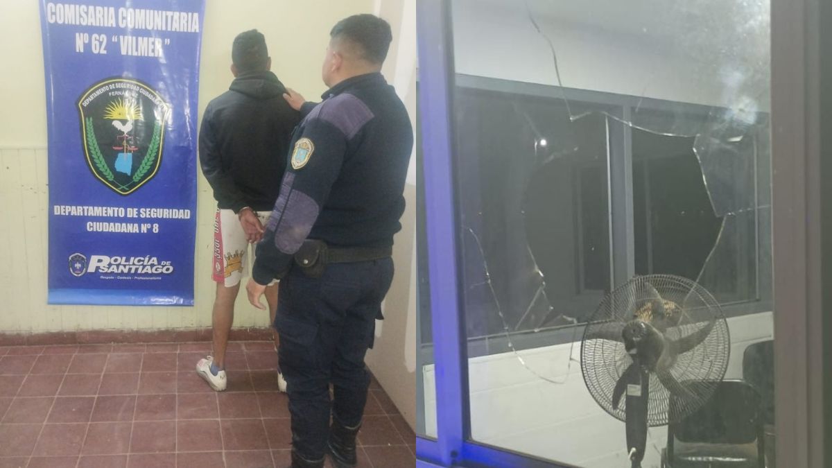 En la madrugada de este domingo, un incidente alteró la tranquilidad en el paraje Villa Colorada, ubicado en el Departamento Robles, cuando un hombre arrojó elementos contundentes contra una garita policial y dañó un móvil policial.