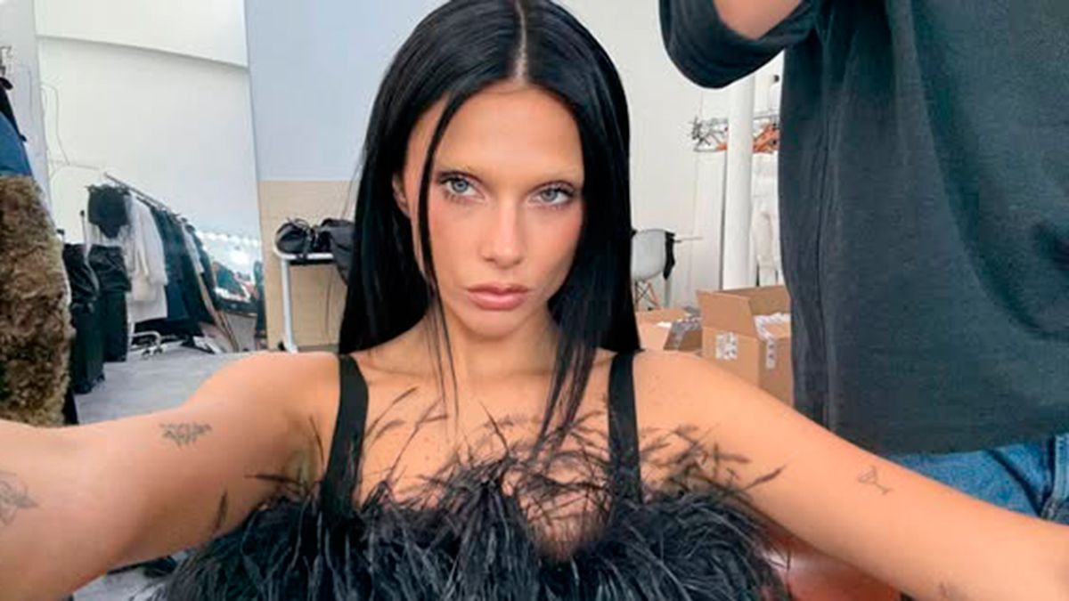 Para la ocasión, la actriz de En el barro apostó por un look audaz y sofisticado: body de tul y encaje negro, minifalda al tono, botas altas de cuero y un bolso geométrico rígido, acompañados de su cabello lacio y suelto. La propuesta total black fue ampliamente elogiada y reforzó su estilo moderno y elegante.