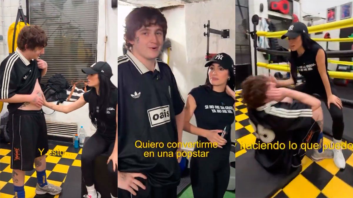 El entrenamiento siguió con sentadillas, coordinación y abdominales, momento en el que Lali llevó la exigencia al máximo: se colocó a sus pies y, mientras lo motivaba a gritos, le dio cachetadas para que siguiera el ritmo. “¿Sos una popstar o no sos una popstar?”, insistía la cantante.