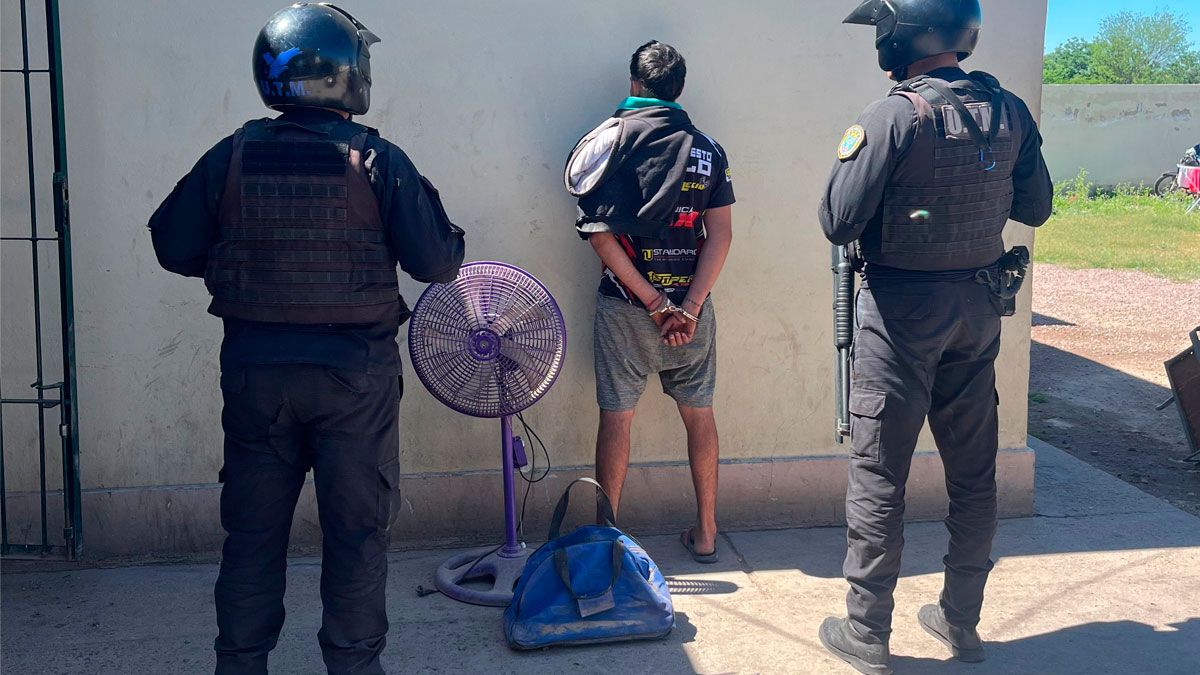 El hecho se registró alrededor de las 3, en la intersección de calles Avellaneda y Fray Mamerto Esquiú, en el barrio San Martín. Personal de recorridos de la Comisaría Comunitaria N° 50 observó a un individuo en actitud sospechosa, que al advertir la presencia policial trató de darse a la fuga, arrojando al suelo un ventilador de pie marca Premium.