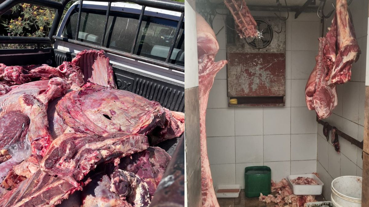 El procedimiento se inició en un domicilio particular de Siete Árboles, donde los inspectores detectaron la realización de faena clandestina. En el lugar se halló una planchada con perchas, aparejos y otros elementos utilizados para la actividad ilegal, los cuales fueron secuestrados. Además, se decomisaron aproximadamente 400 kilos de carne roja que no contaban con las condiciones sanitarias correspondientes y estaban totalmente fuera del circuito habilitado.