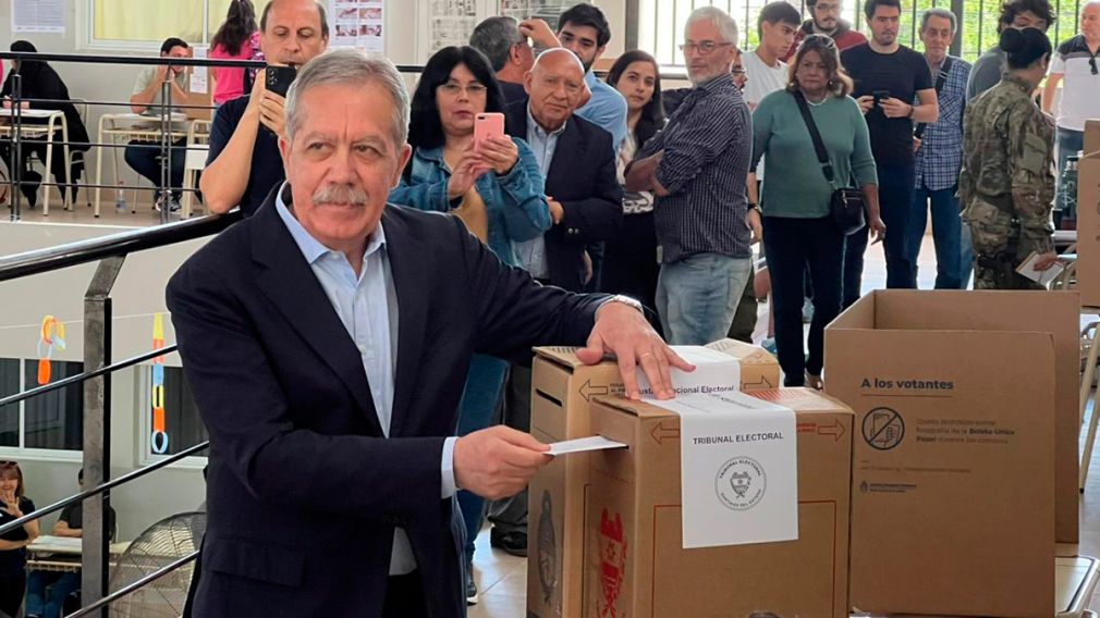 El candidato a gobernador por el Frente Cívico, Elías Suárez, votó minutos después de las 11 en la Escuela de Manualidades.