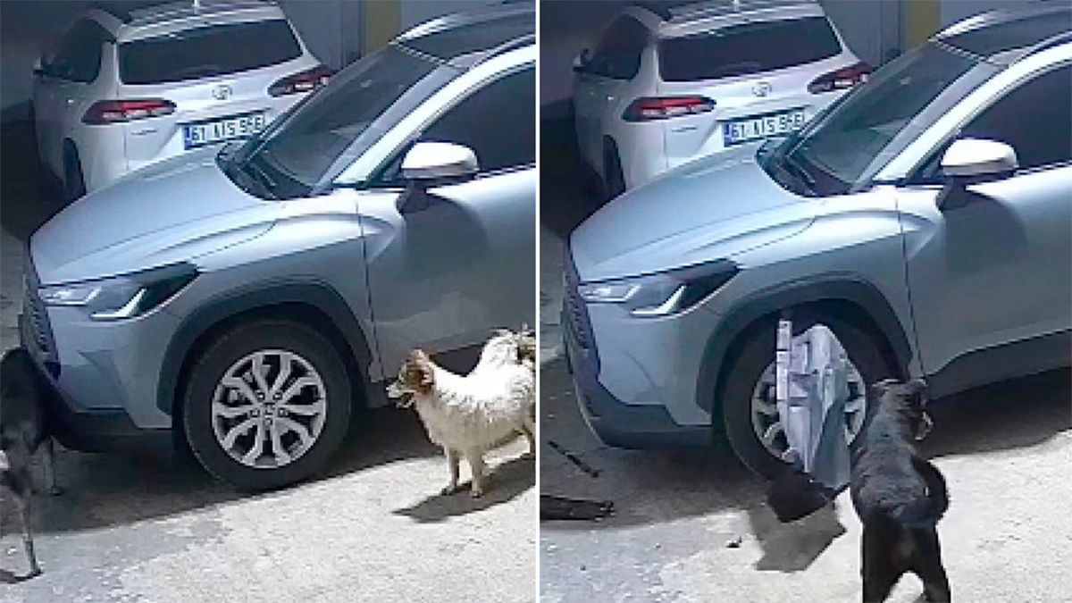 La vandálica acción canina, ocurrida en un estacionamiento de la ciudad turca de Trebisonda, quedó registrada por cámaras de vigilancia, a las que el dueño del vehículo tuvo que recurrir para esclarecer lo sucedido.
