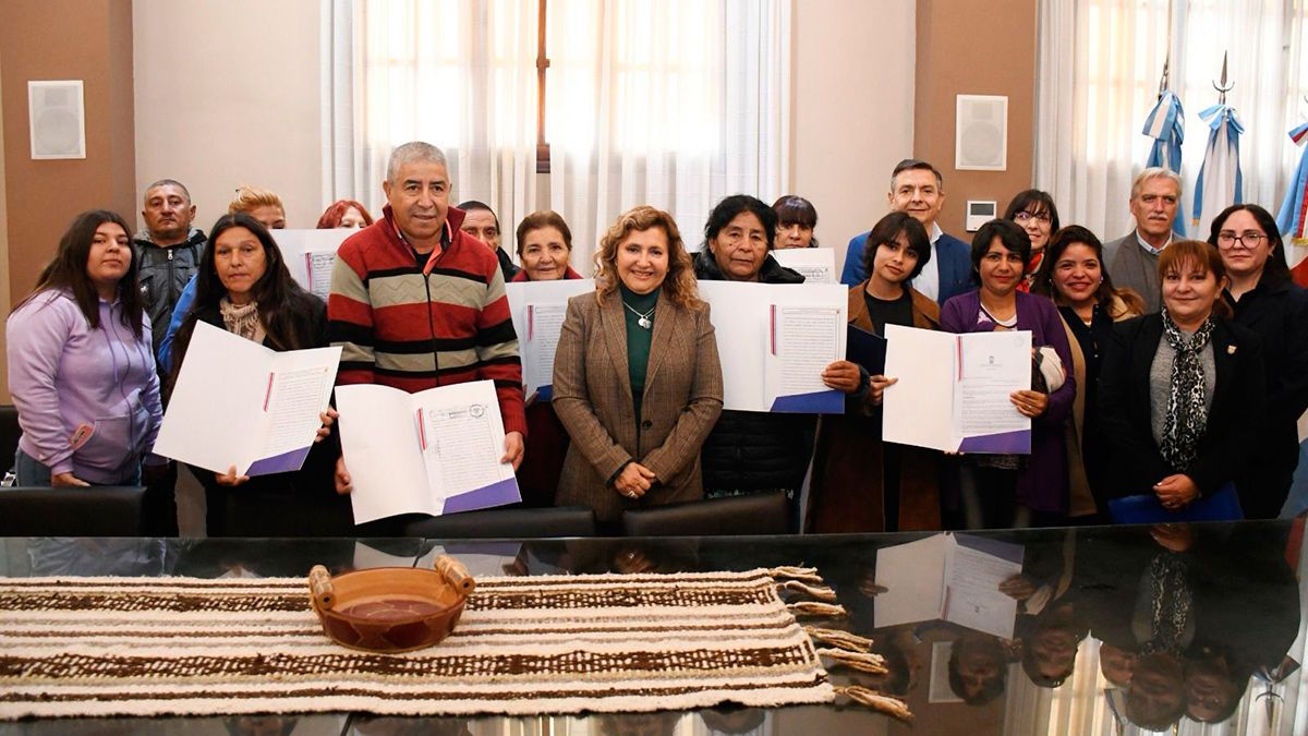 Recibieron escrituras y decretos los vecinos Magalí Mancilla del barrio Borges, María Ledesma y Cristina Ibarra del barrio Juan Felipe Ibarra, Carla Ábalos y Francisca Luna del barrio Cáceres, Virginia Ledesma del barrio Sarmiento, Carlos Chazarreta del barrio Primera Junta, Mónica Reynaga del barrio Rivadavia y Delicia Sayago y César Gramajo del barrio Bruno Volta.