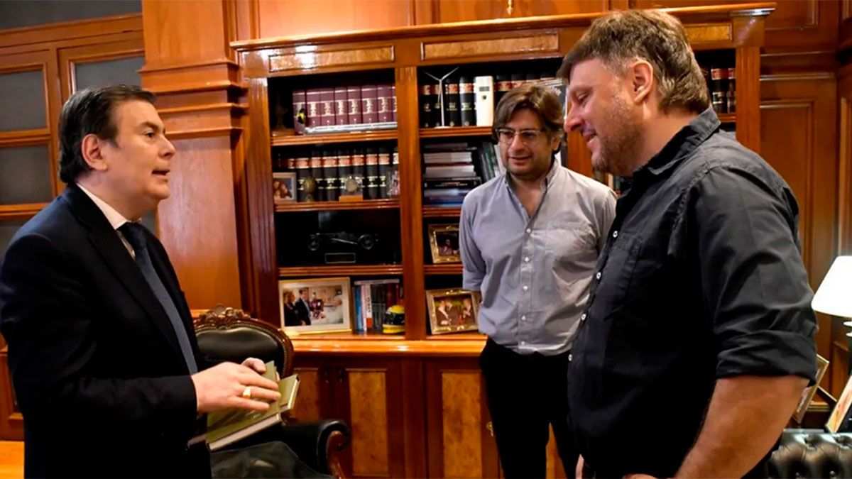 El gobernador Gerardo Zamora, acompañado por el jefe de Gabinete, Elías Suárez, recibió al diputado nacional Leandro Santoro, quien participó en un conversatorio en la ciudad de Fernández.