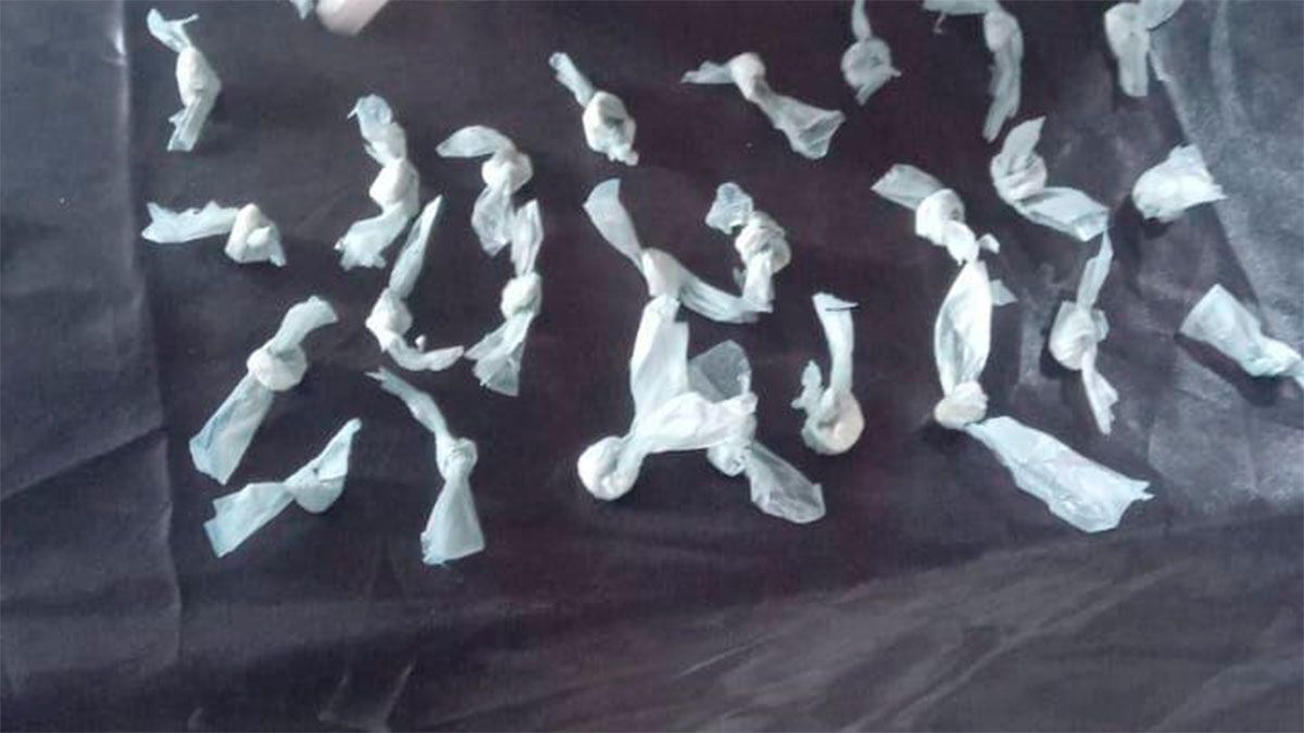 Durante el control realizado los efectivos observaron que un hombre llevaba una caja de cigarrillos que, al ser inspeccionada, contenía varios envoltorios de nylon color gris. En su interior, los envoltorios ocultaban una sustancia pulverulenta de color blanco, por lo que de inmediato se solicitó la presencia del personal especializado de la Dirección General de Drogas Peligrosas.