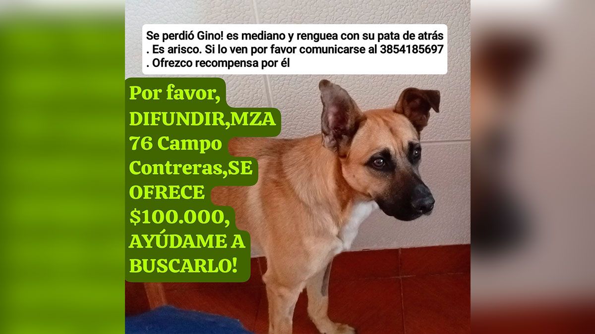 El animal es de tamaño mediano y presenta una renguera en una de sus patas traseras, un detalle clave para identificarlo. Ante la desesperación por encontrarlo, sus dueños ofrecen una recompensa de $100.000 a quien pueda aportar información certera sobre su paradero.