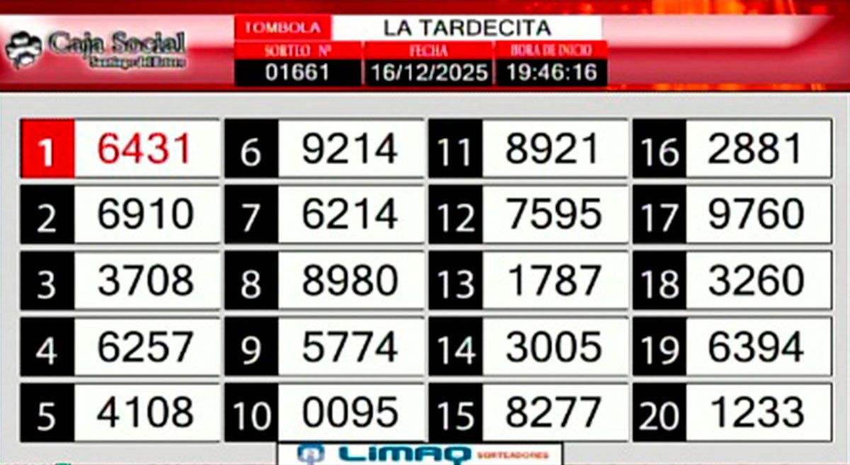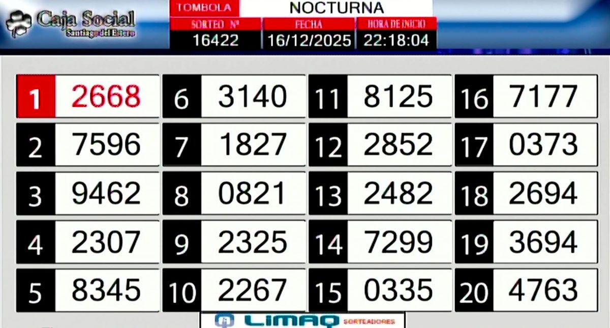 Este martes 16 de diciembre, como todos los días, se llevó a cabo un nuevo sorteo de la Tómbola Santiagueña.