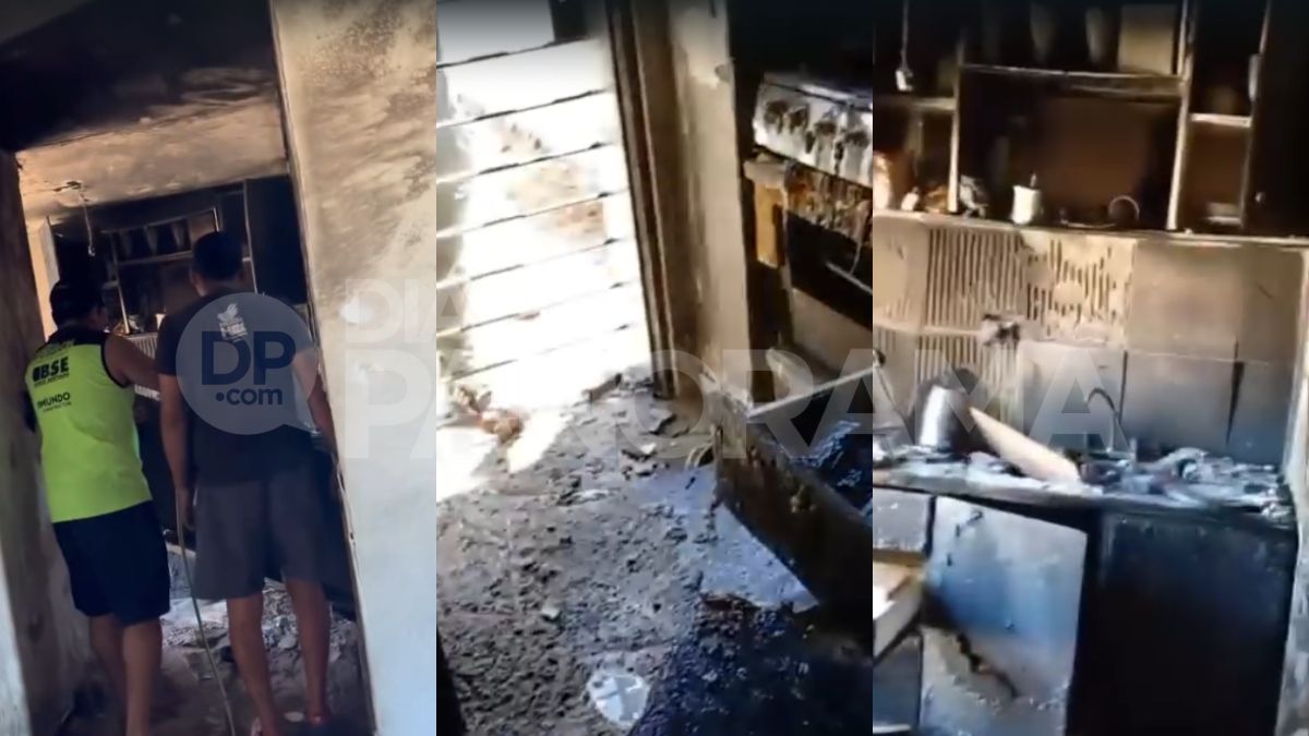 El fuego se habría iniciado por la explosión de un bidón con nafta. Imágenes y videos enviados al WhatsApp de Diario Panorama muestran la destrucción total de la vivienda.