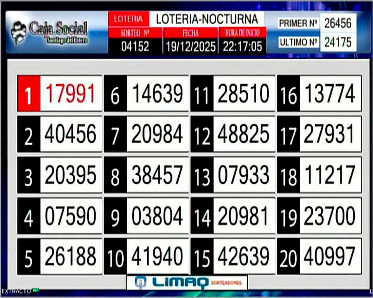 Este viernes 19 de diciembre, como todos los días, se llevó a cabo un nuevo sorteo de la Tómbola Santiagueña.