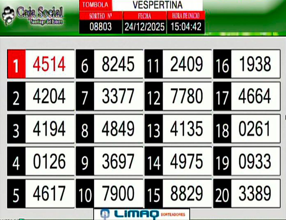 Este miércoles 24 de diciembre, como todos los días, se llevó a cabo un nuevo sorteo de la Tómbola Santiagueña.
