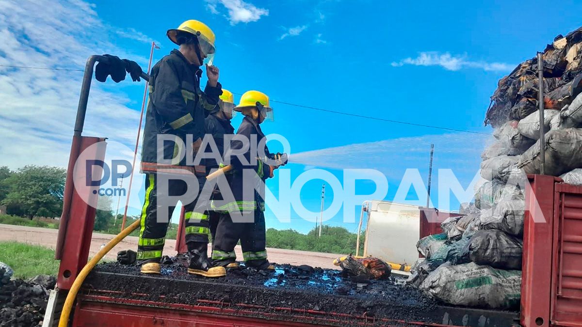 Un principio de incendio en un acoplado cargado con carbón vegetal movilizó durante la tarde del martes a personal policial y a Bomberos Voluntarios, en el kilómetro 582 de la Ruta Nacional N.º 34, en jurisdicción de Herrera.