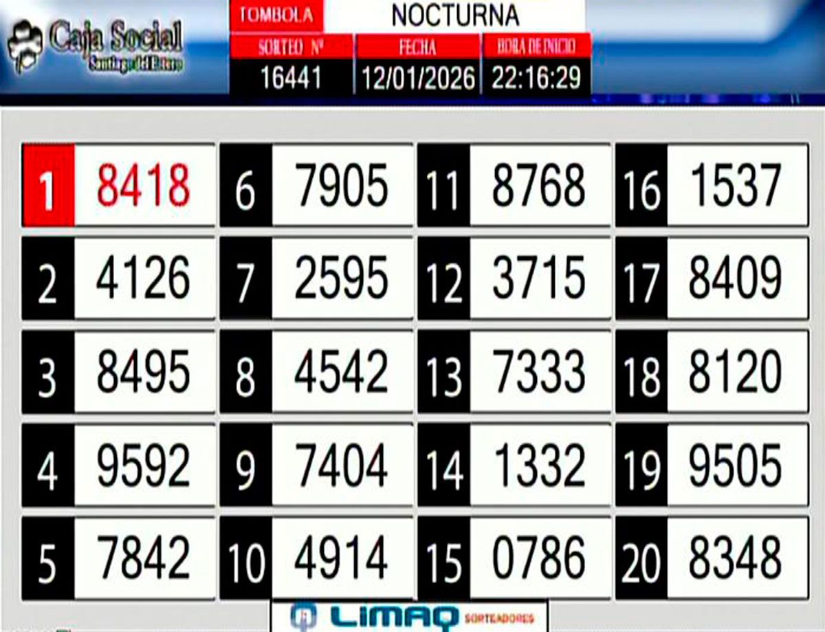Este lunes 12 de enero, como todos los días, se llevó a cabo un nuevo sorteo de la Tómbola Santiagueña.