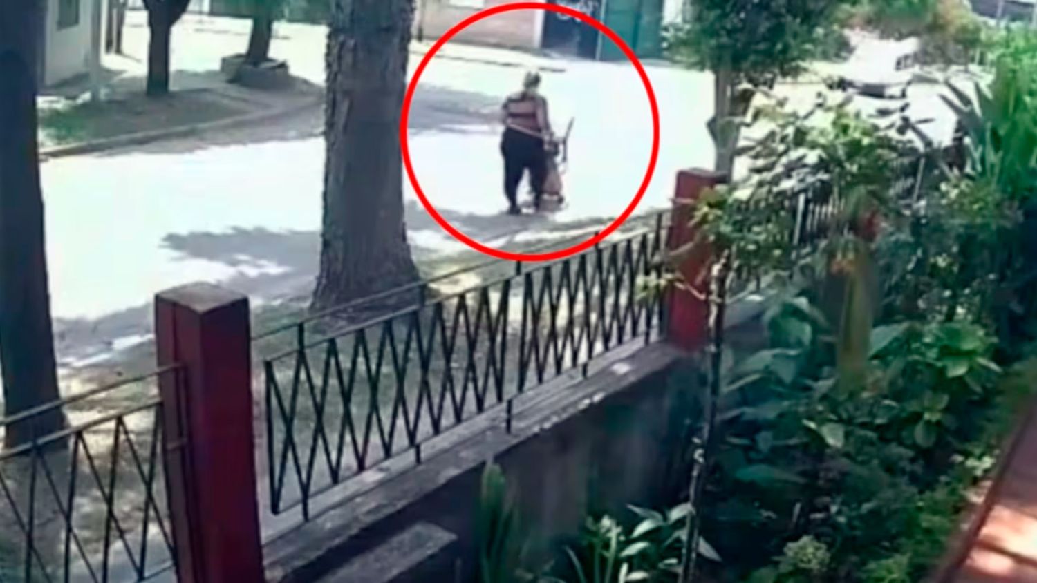En las imágenes se puede observar la secuencia completa: la víctima caminaba por la calle empujando un carrito de compras. Al llegar a la esquina, un colectivo de línea impactó de lleno contra un auto.
