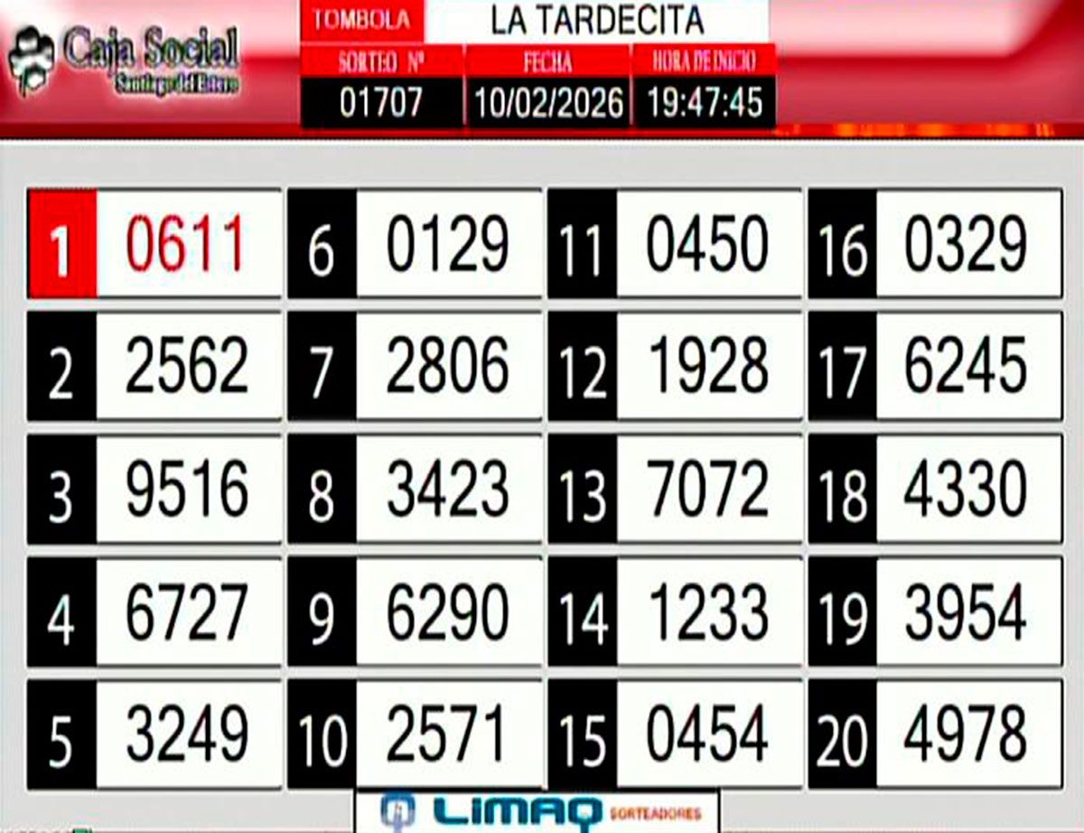 Este martes 10 de febrero, como todos los días, se llevó a cabo un nuevo sorteo de la Tómbola Santiagueña.