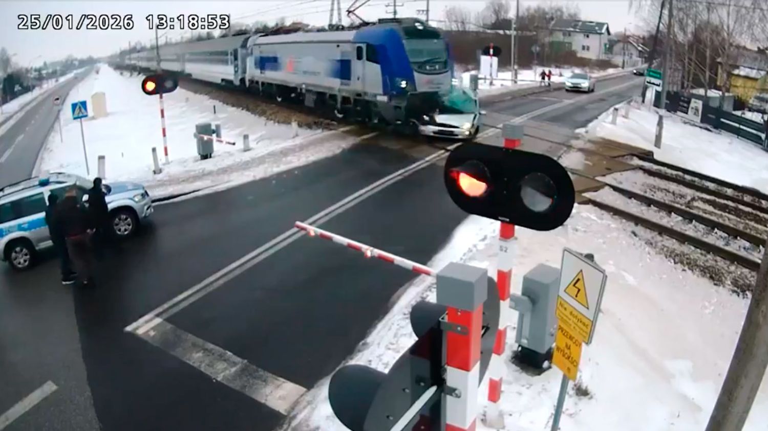 La empresa que administra el transporte ferroviario en Polonia difundió un video del incidente ocurrido el 25 de enero en un paso a nivel de Blonie, cerca de Varsovia.