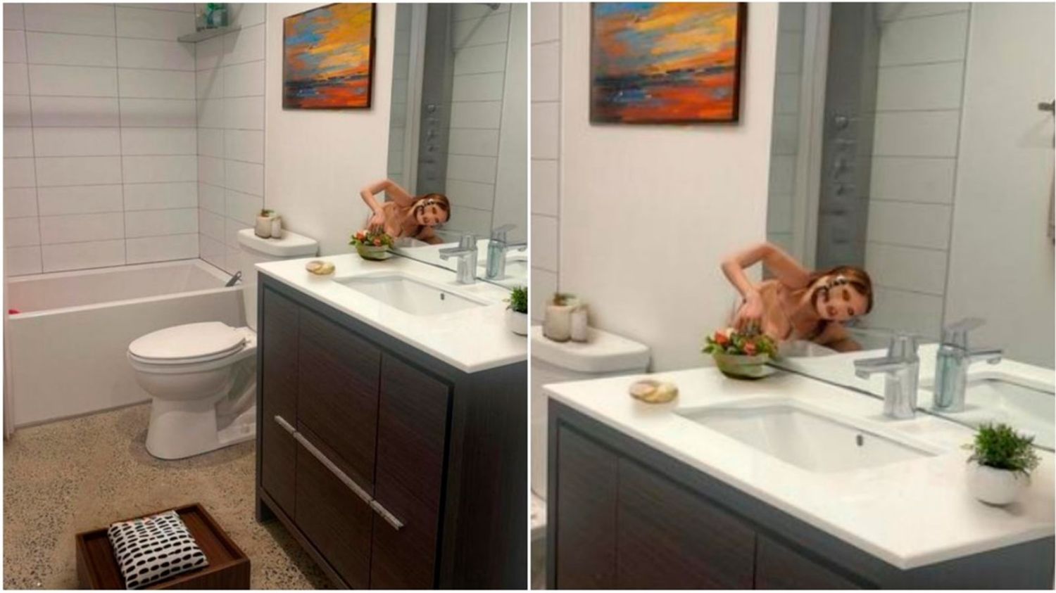 En el anuncio, publicado en la plataforma Apartments.com, se apreciaba una figura humanoide y desfigurada saliendo del espejo del baño, una distorsión creada aparentemente por el algoritmo al editar la imagen.