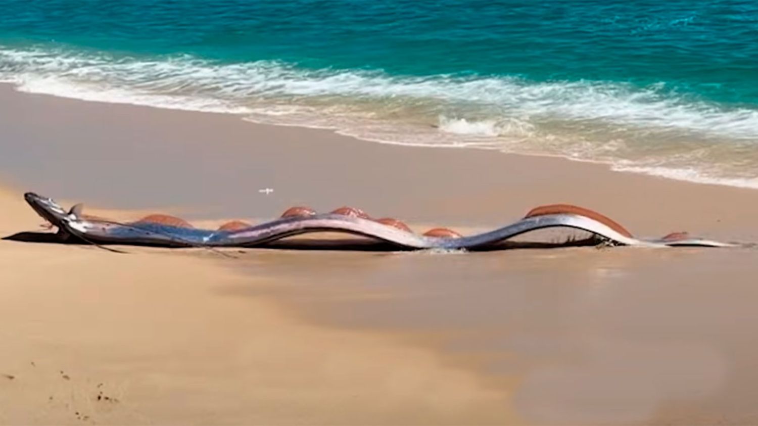 Un inusual hallazgo llamó la atención de turistas en una playa de Cabo San Lucas, donde dos visitantes estadounidenses se toparon con enormes ejemplares de Pez remo, una especie marina extremadamente rara que puede alcanzar longitudes cercanas a los nueve metros.