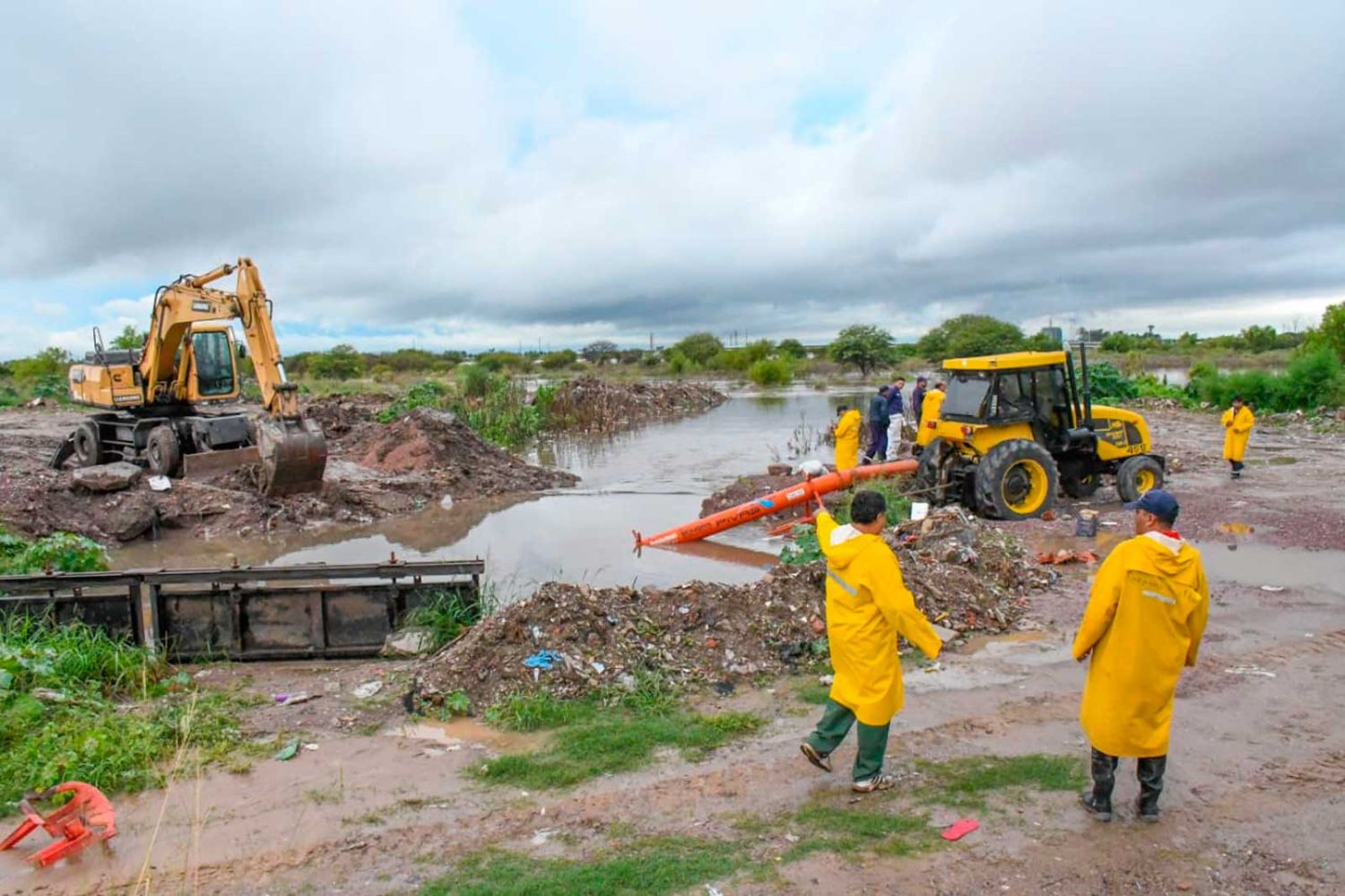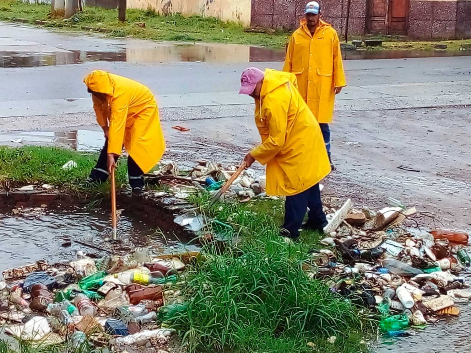 Trabajaron decenas de operarios, especialmente en la zona del barrio La Católica. Aplicaron protocolos y drenaron el agua en las calles.