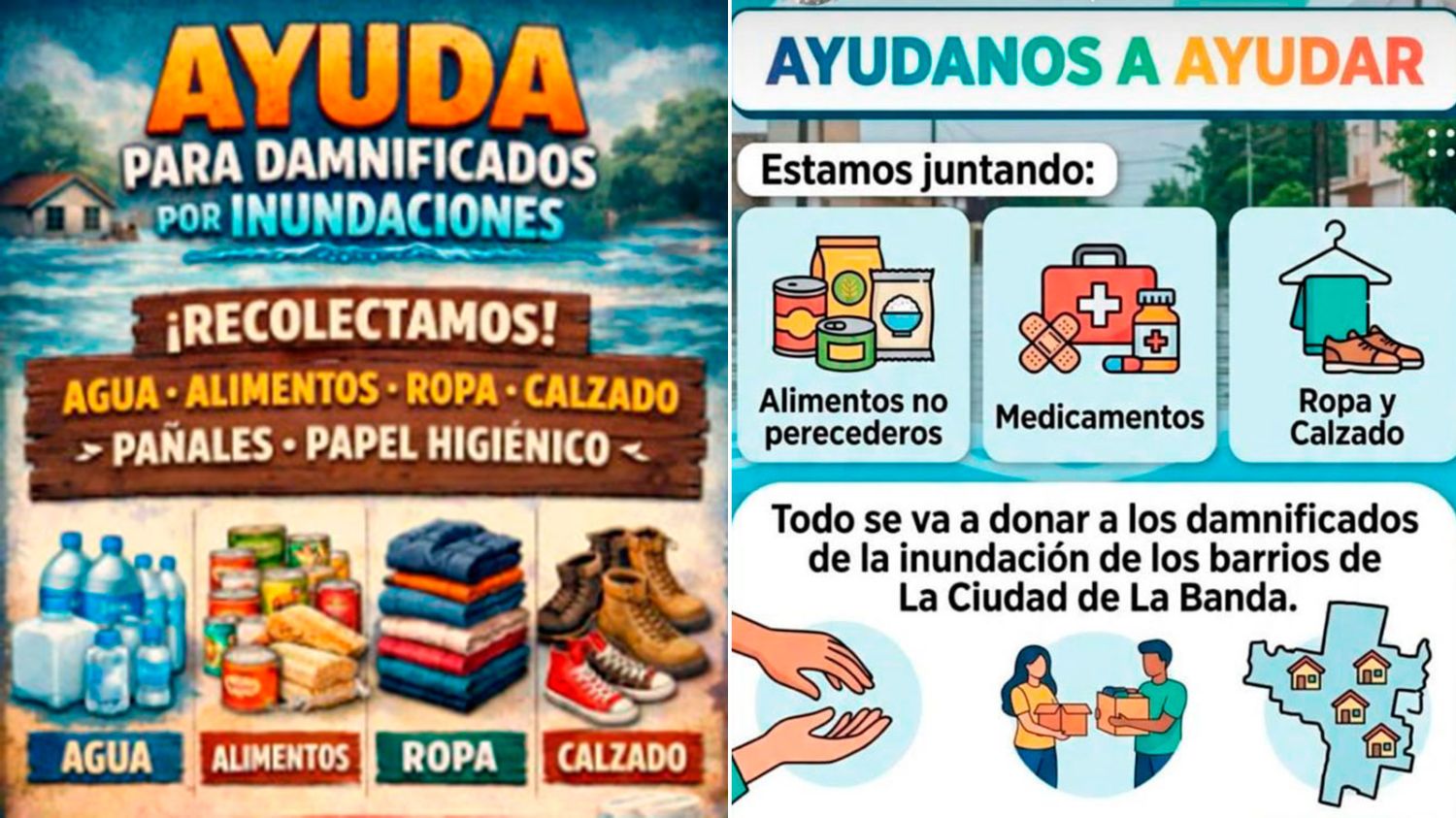 Organizaciones sociales, agrupaciones y vecinos de diferentes barrios impulsan campañas solidarias para reunir alimentos, ropa y elementos de primera necesidad destinados a las familias afectadas.