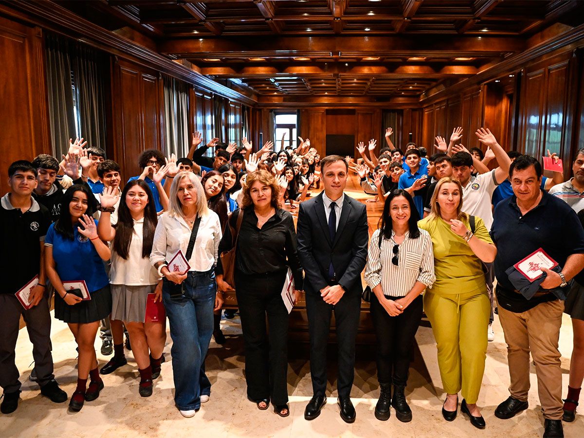Durante el encuentro mantenido en el Salón de Acuerdos de Casa de Gobierno, los alumnos juntos a sus docentes mantuvieron una charla amena con el jefe de Gabinete, donde resaltaron la importancia del programa y comentaron sobre el desarrollo de la agenda de viaje.