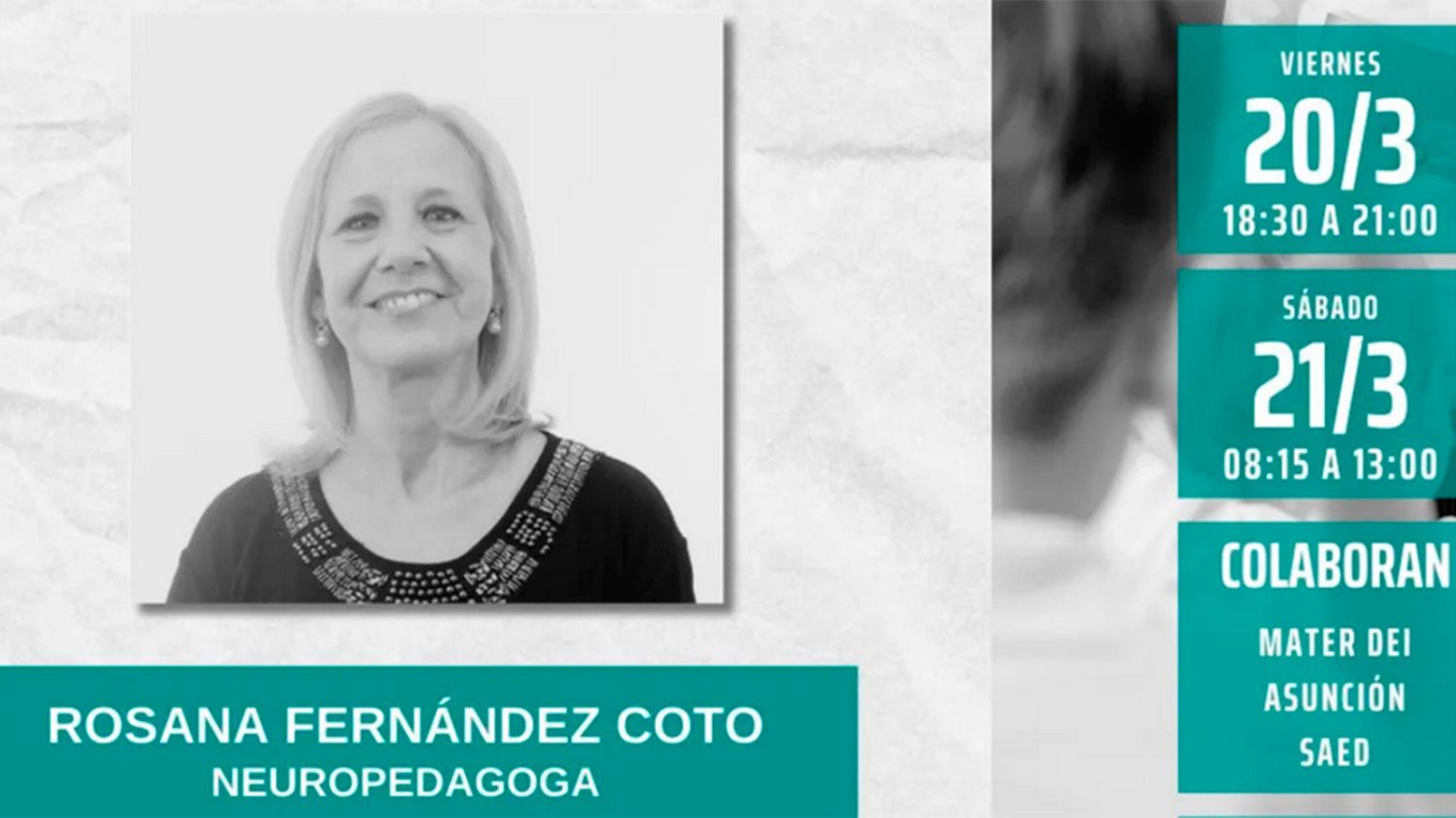 Organizada por el Colegio Belén, la actividad, titulada "Neuropedagogía: aprender, enseñar y educar desde una perspectiva neuropedagógica", estará a cargo de la destacada especialista Rosana Fernández Coto.