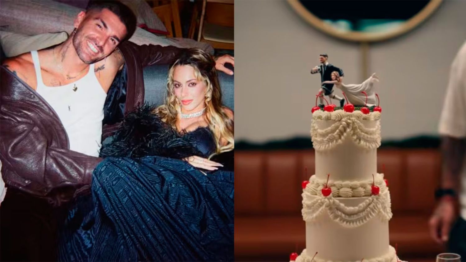 Sumada a las tantas pistas, la “cereza del pastel” fue, precisamente, una torta blanca de tres pisos con estética de boda, con dos muñecos en la parte superior de un futbolista y una novia.