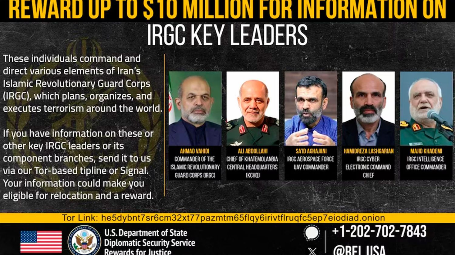 “Estos individuos comandan y dirigen diversos elementos del Cuerpo de la Guardia Revolucionaria Islámica de Irán (CGRI), que planifica, organiza y ejecuta actos terroristas en todo el mundo”, declaró el Departamento de Estado. “Si tiene información sobre estos u otros líderes clave del CGRI o sus ramas, envíenosla a través de nuestra línea de información en Tor o Signal”.