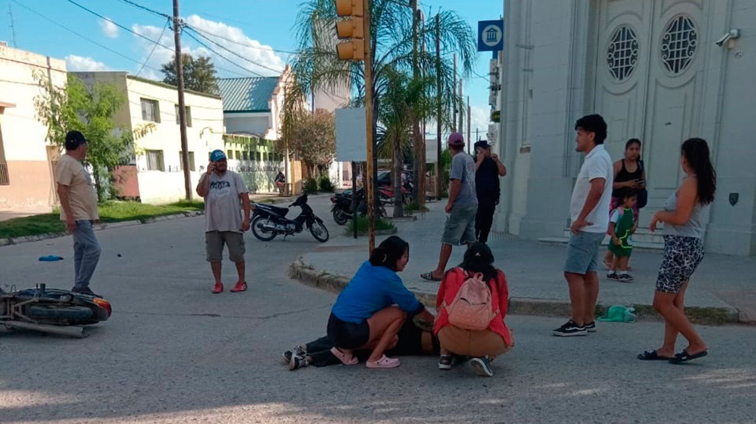 Un grave incidente vial se registró en la intersección céntrica de las calles Sarmiento y Pueyrredón, dejando como saldo a dos personas heridas.