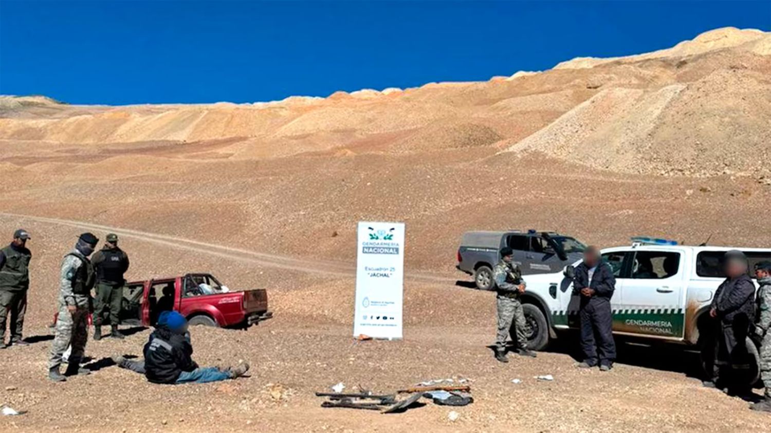 Al acercarse, los gendarmes comprobaron que los hombres efectivamente habían ingresado ilegalmente al territorio nacional, probablemente por un paso clandestino, y que en una camioneta tenían herramientas de minería, 14 bolsas con rocas extraídas, una carabina calibre .22 y oro en bruto.