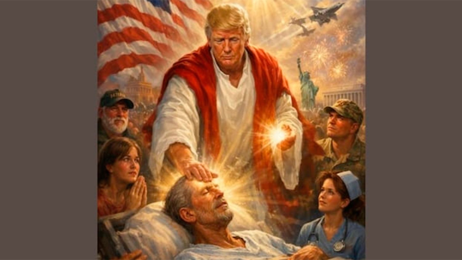 Pero en su delirio, ahora difunde imágenes mostrándose a sí mismo como Jesucristo. Y no entro en el terreno de si se trata o no de blasfemia… Sí de delirium tremens. Y, de paso, no está de más pensar qué les ocurre a los miles de personas que lo ven bien, o que lo celebran; ¿qué tienen en sus mentes (si es que las usan)?