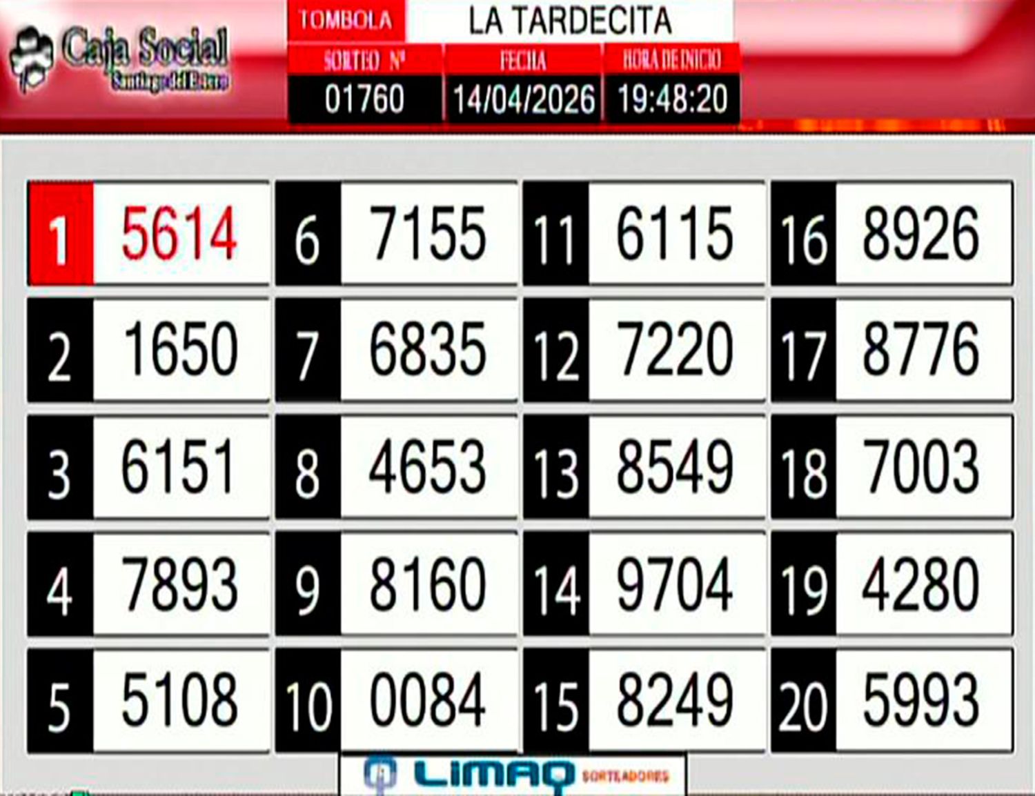 Este martes 14 de abril, como todos los días, se llevó a cabo un nuevo sorteo de la Tómbola Santiagueña.