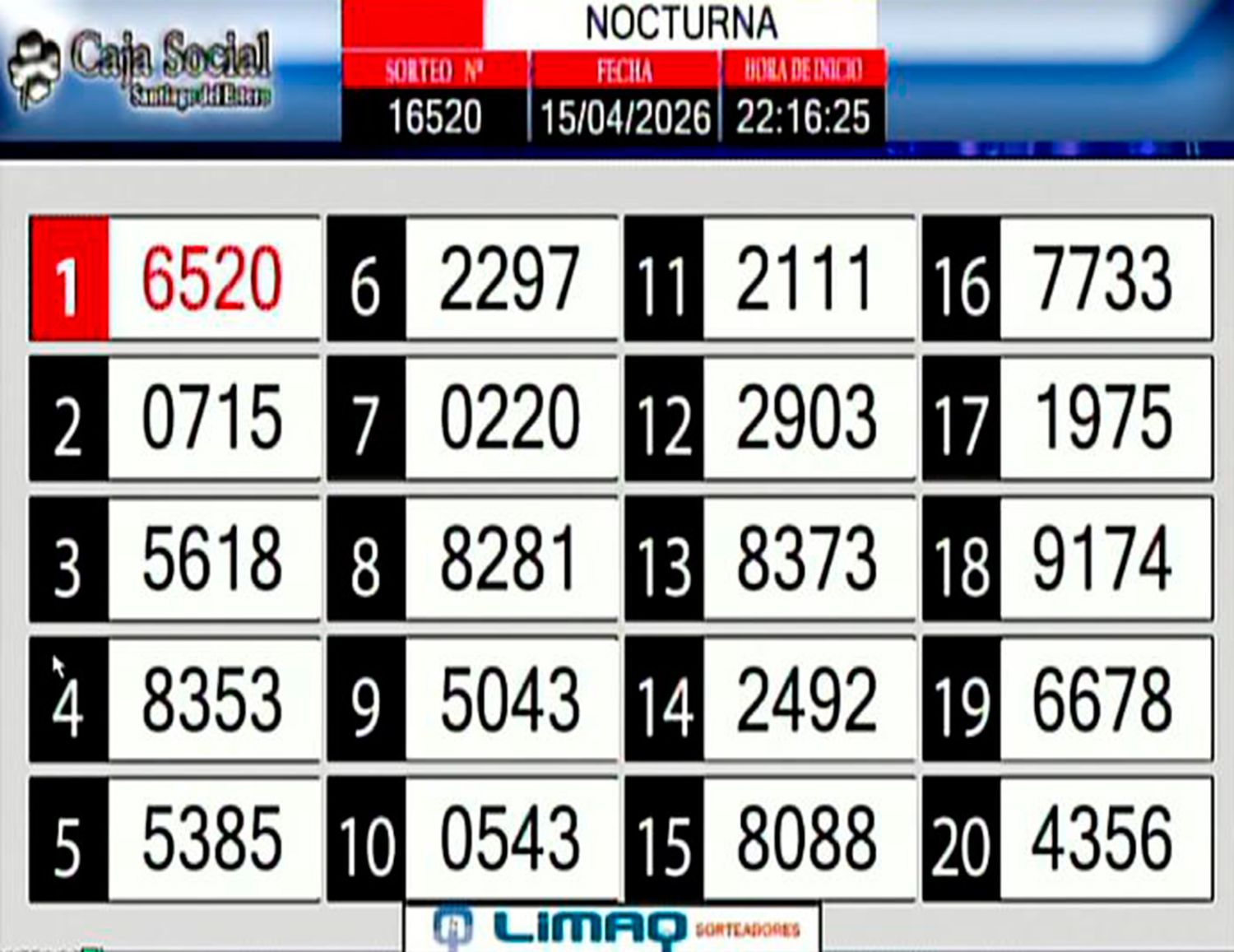 En la edición Nocturna el primer premio fue para el 6520. En el Libro de los Sueños el 20 es “la fiesta”.